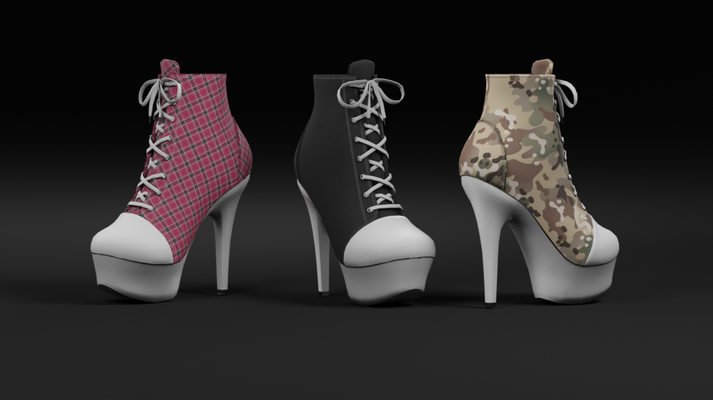 A complete set of Masks so you can recolor the other components like laces and the shelltoe/platforms yourself with matcaps or RGBA masking.. or use them in photoshop or gimp as mask and multiply some color on them!