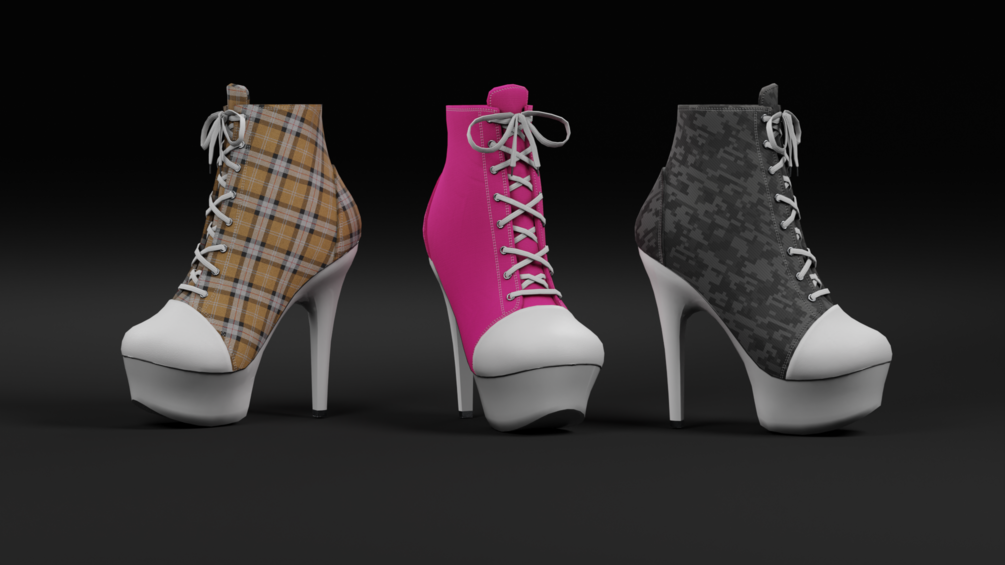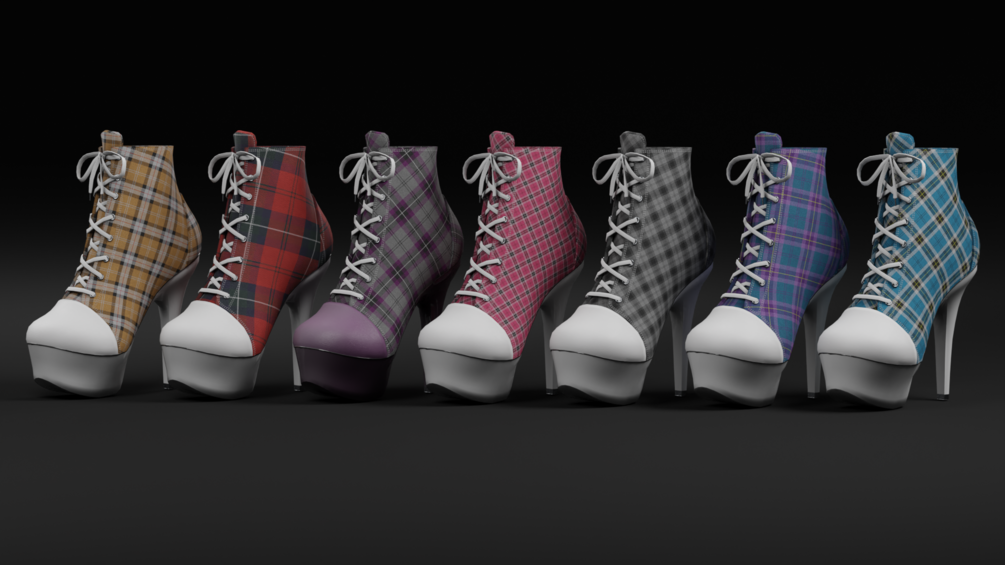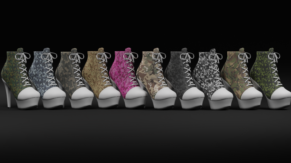 A complete set of Masks so you can recolor the other components like laces and the shelltoe/platforms yourself with matcaps or RGBA masking.. or use them in photoshop or gimp as mask and multiply some color on them!
