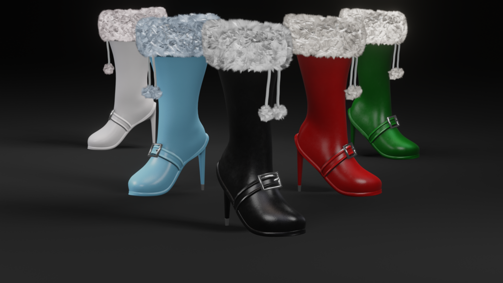 A set of Masks for the body of the leather, the laces, the fluff and the metal parts for masking different effects, coloring, hueshifting or matcapping.